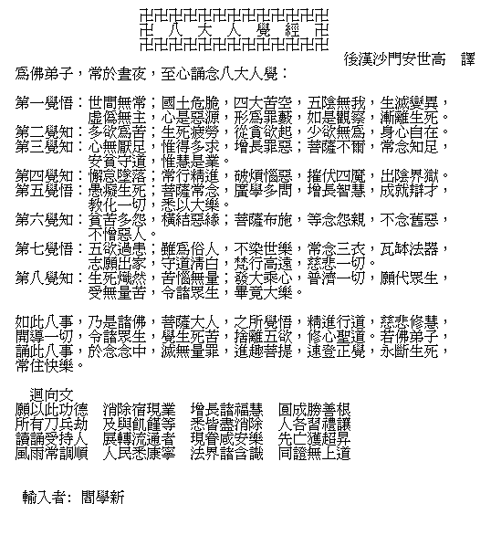 Eight Enlightenment Sutra