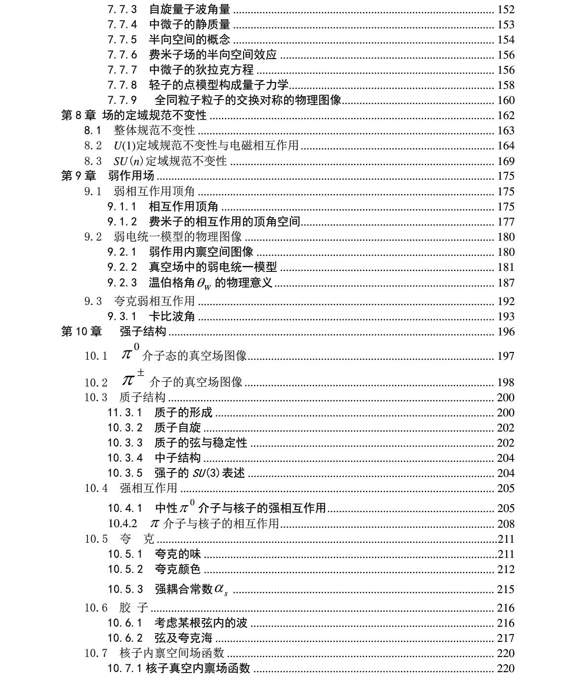 第十章 弱作用场...................................................................................- 267 - 10.1 弱相互作用顶角.................................................................................- 267 - 10.1.1 相互作用顶角的半向空间图像............................................................- 267 - 10.1.2 μ 子衰变的内禀结构变化..................................................................- 268 - 10.1.3 费米子的相互作用的顶角空间............................................................- 269 - 10.2 弱电统一模型的物理图像........................................................................- 276 - 10.2.1 弱作用内禀空间图像...........................................................................- 276 - 10.2.2 真空场中无对称破缺弱的电统一模型................................................- 276 - 10.2.3 温伯格角 θW 的物理意义.....................................................................- 283 - 10.3 Quark 弱相互作用.............................................................................- 289 - 10.3.1 卡比波角.....................................................................................- 290 - 10.3.2 夸克弱电统一规范理论.......................................................................- 292 -