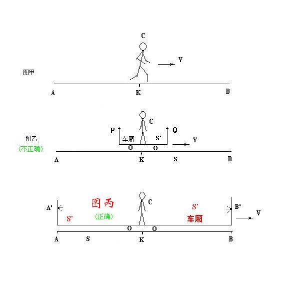 如同图甲中,路基中点的人向B点跑去,他肯定不能同时看到A和B发出的光。 对吧。