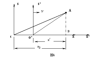 在一维情况下,认为光点A与它的投影点B近似 ![]() 重合,即OA=OB =x,在S系中(图7)有