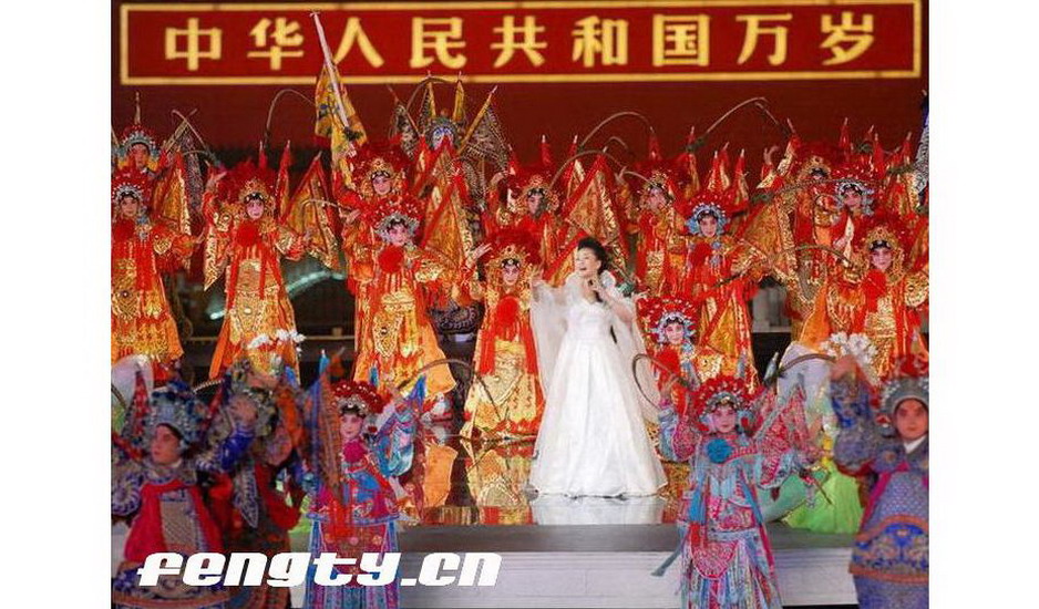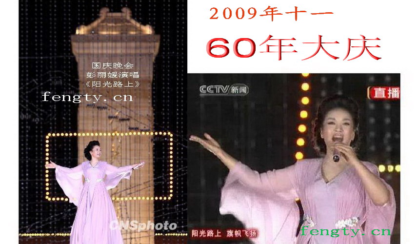 2009年10月1日晚,新中国成立60周年联欢晚会在北京天安门广场举行。演唱《阳光路上》。