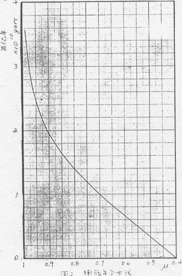 开始膨胀,从图上查出的膨胀年龄是310亿年。这是宇宙视膨胀年龄的上限。