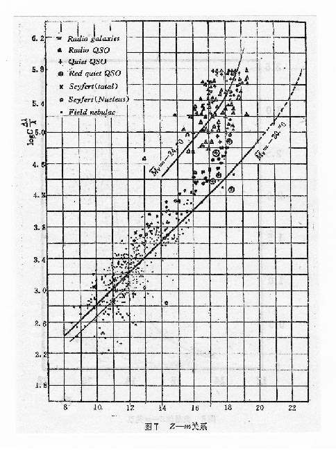 根据类星体总表[10]描绘出类星体的哈勃图是图8。图中的曲线对应
