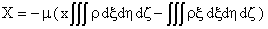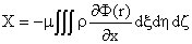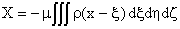 | 把右边分解成两个积分,并且注意到x 与变量ξ,η,ζ无关,X的表达式就成为: | |||||
