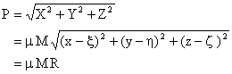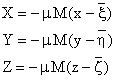 | 其中M 为吸引物体的质量而 ξ 是重心的坐标;因此 | |||||