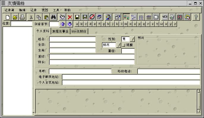 | yq.tar.gz | 32K | 在linux下用gtk+编的友情强档,只完成了界面,我在暑假前不能开机了,希望高手帮忙,目前正在与尹强联系。 截下的图片。 |